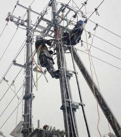 電力設施檢修電力工人攜帶鋁合金手扳葫蘆檢修作業...